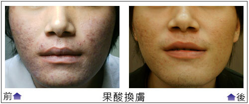 果酸换肤,简而言之,就是拿果酸来换肤的意思。即使用高浓度的果酸进行皮肤角质的剥离作用,促使老化角质层脱落,加速角质细胞及少部分上层表皮细胞的更新速度,促进真皮层内弹性纤维增生,对浅层痘疤有较好疗效,也能改善毛孔粗大,但需经多次疗程治疗后才能消除痘疤,但优点是安全,副作用小。