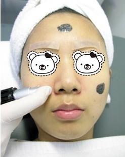 然后医生就均匀的在我脸上抹碳粉,医生告诉我这些细小的碳粉颗粒要在我皮肤停留3-5分钟