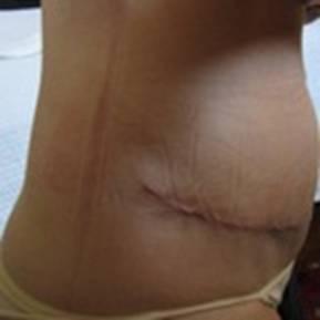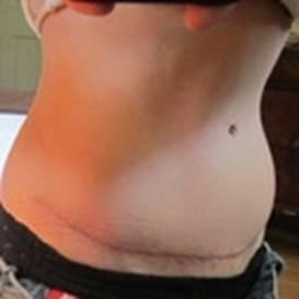 我今年40岁,两个孩子的妈,肚子上的皮肤很松弛。10个月前我做了腹壁整形手术来修复腹部肌肉,但是留下了很长很明显的疤痕,而且颜色还偏红,大概有2厘米厚。