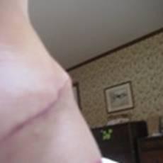 不过让我担心的一个问题就是,右侧疤痕还是不太雅观,肿的有点高,希望它能尽快消肿。现在我还是让切口尽量保湿,拿东西盖住,据说这是促进切口愈合的方式。