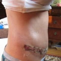我今年40岁,两个孩子的妈,肚子上的皮肤很松弛。10个月前我做了腹壁整形手术来修复腹部肌肉,但是留下了很长很明显的疤痕,而且颜色还偏红,大概有2厘米厚。