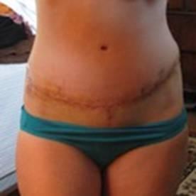 早上怀着忐忑的心情走进了手术室,用的是全麻。手术大概2个小时。我睡着了,所以没感觉到什么,不过医生跟我描述了大概的手术过程,先切除陈旧疤痕的表面,没有太深,然后用线缝合,直观上就变成了一下细长的疤痕。现在切口被抱起来了,真的好期待效果哦,但是我又担心肚子上的张力会把切口撑开。