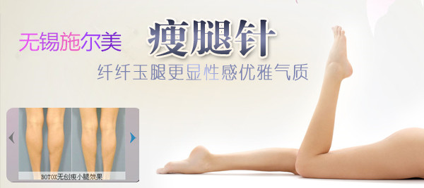 无锡施尔美整形美容医院医生介绍:采用注射瘦腿针的方法瘦小腿适合小腿肌肉发达的人,对小腿脂肪过多的人无效。它的原理是利用瘦腿针使肌肉退化而达到瘦小腿的作用。采用此方法瘦肌肉过多的小腿效果还是很明显的,不过的缺点是容易反弹,也就是过一段时间(一般半年以上)肌肉又恢复了,还得再次注射。